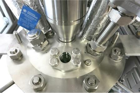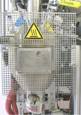 Darüber hinaus verfügt die Anlage über 2 Edelstahltanks mit jeweils 1 L Fassungsvermögen sowie eine Kühlfalle und einen Dewar-Behälter zur Kondensation flüchtiger Bestandteile. Die Anlage kann somit sowohl im Vakuum als auch bis 12,8 bar Betriebsdruck betrieben werden. Das Hochtemperatur-Thermostat erlaubt Vorlauftemperaturen bis 330 °C und ist zur Schonung des Öls mit Stickstoff überlagert. Das Bodenventil mit Auslassdüse ist beheizt.