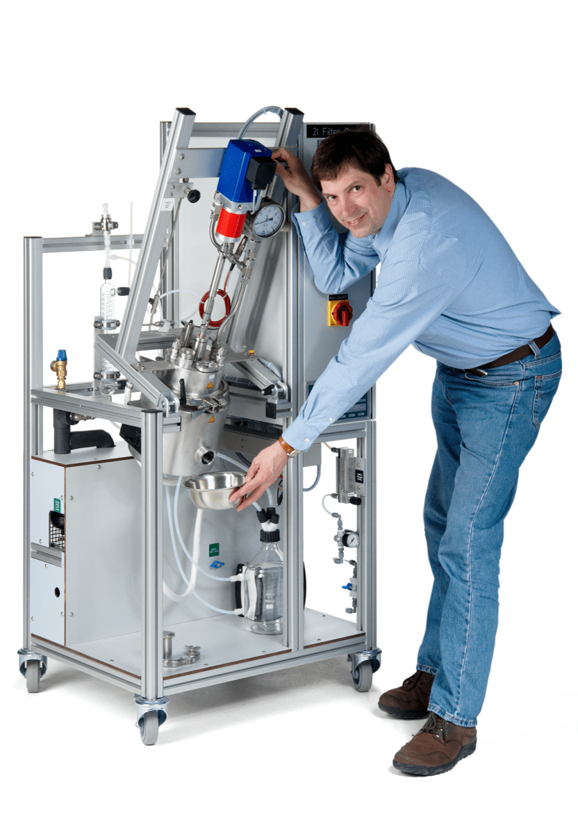 Kein Papierfilter erforderlich, aber als Option möglich: Durch den Wegfall von Papierfiltern reduzieren wir nicht nur die Verbrauchsmaterialien, sondern verbessern auch die Wärmeübertragung und die mechanische Stabilität während des Rührvorgangs. Es ist aber auch eine Spannvorrichtung für Papier oder Tuchfilter vorgesehen.