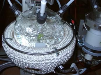 The rectification unit is equipped with a phase separator, which allows additional liquid/liquid separation and selective return of one phase. The electrically heated sump evaporator has a heating jacket with a heating capacity of 0.75 kW. The temperature can be controlled via an integrated temperature sensor, allowing the process to be set exactly.